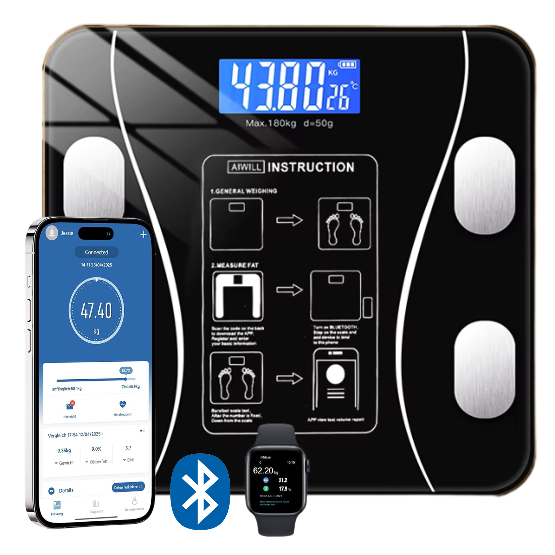 Muy contento con esta báscula digital que mide no solo el peso de manera precisa con gramos, si no que también a través de la app que se descarga y es muy fácil de usar, puedes ver historial y mediciones, gráficos y más sobre cosas como la masa corporal.Estéticamente queda muy bien en mi baño, es bonita y pega perfectamente como una parte más del baño.Es una báscula inteligente y no solo una báscula normal de toda la vida. Es una buena opción para motivarte en los entrenamientos y en la dieta al poder tener más parámetros de tu cuerpo que no solo es el peso.