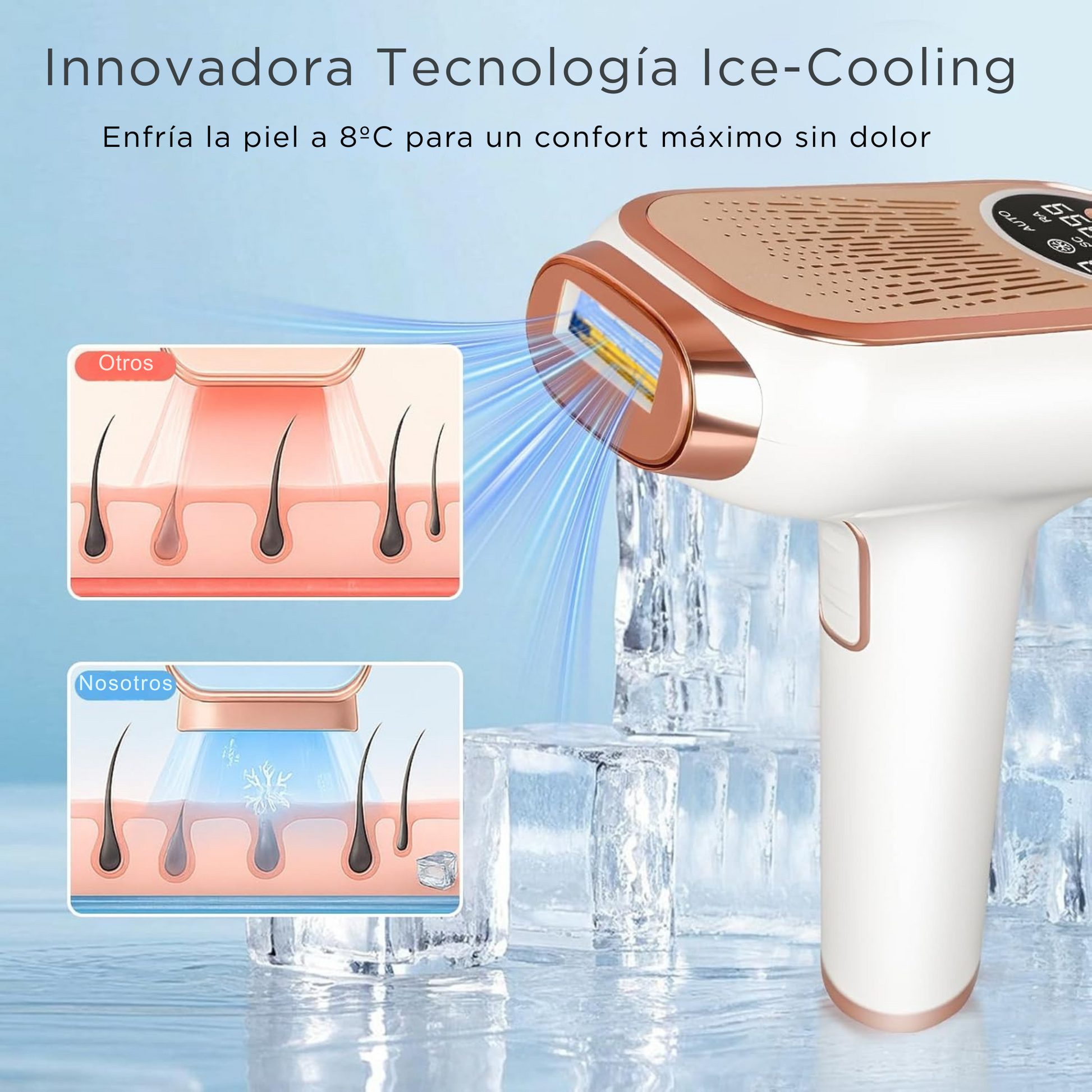 Con la Depiladora IPL 2025 con enfriamiento por zafiro tendrás los mismos resultados que en los centros profesionales, pero en tu casa, a tu ritmo y con una sensación casi indolora gracias a su sistema de refrigeración avanzado.