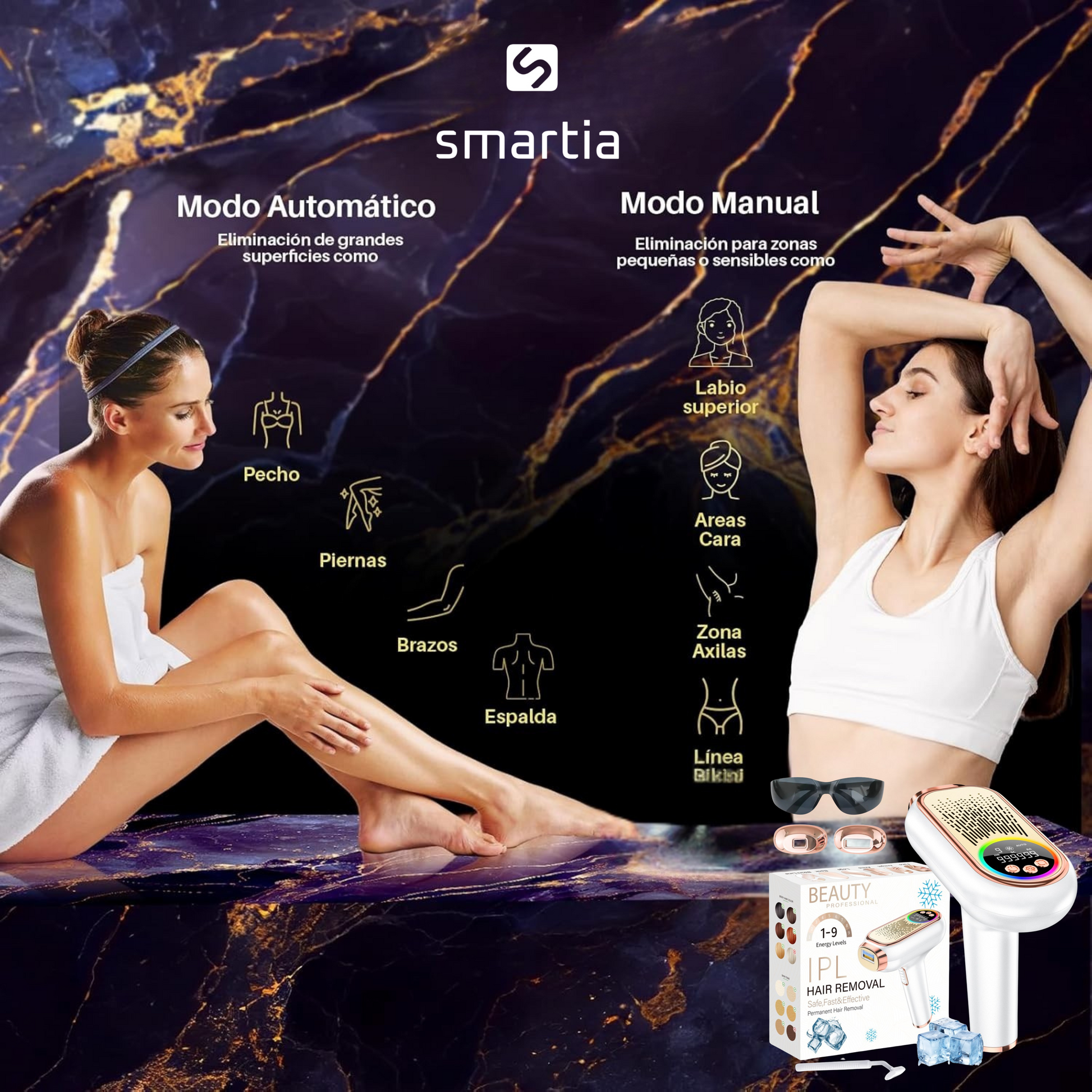 - 🔒 Seguro y fácil de usar – Sensor integrado por IA que anula el disparo si tu piel o tu bello no son actos para el uso.